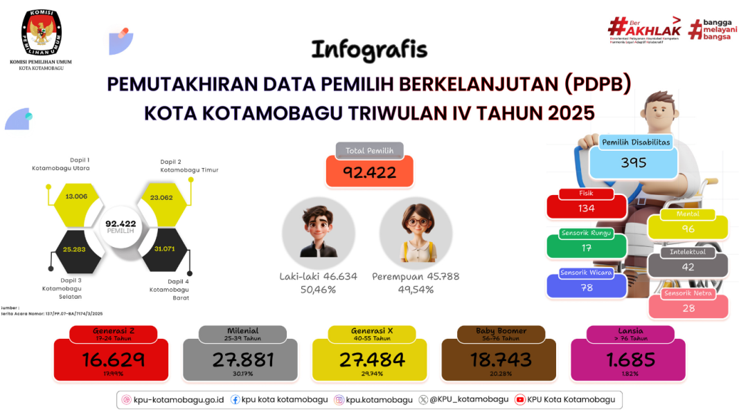 Infografis Pemutakhiran Data Pemilih Berkelanjutan (PDPB) Kota Kotamobagu Triwulan IV Tahun 2025