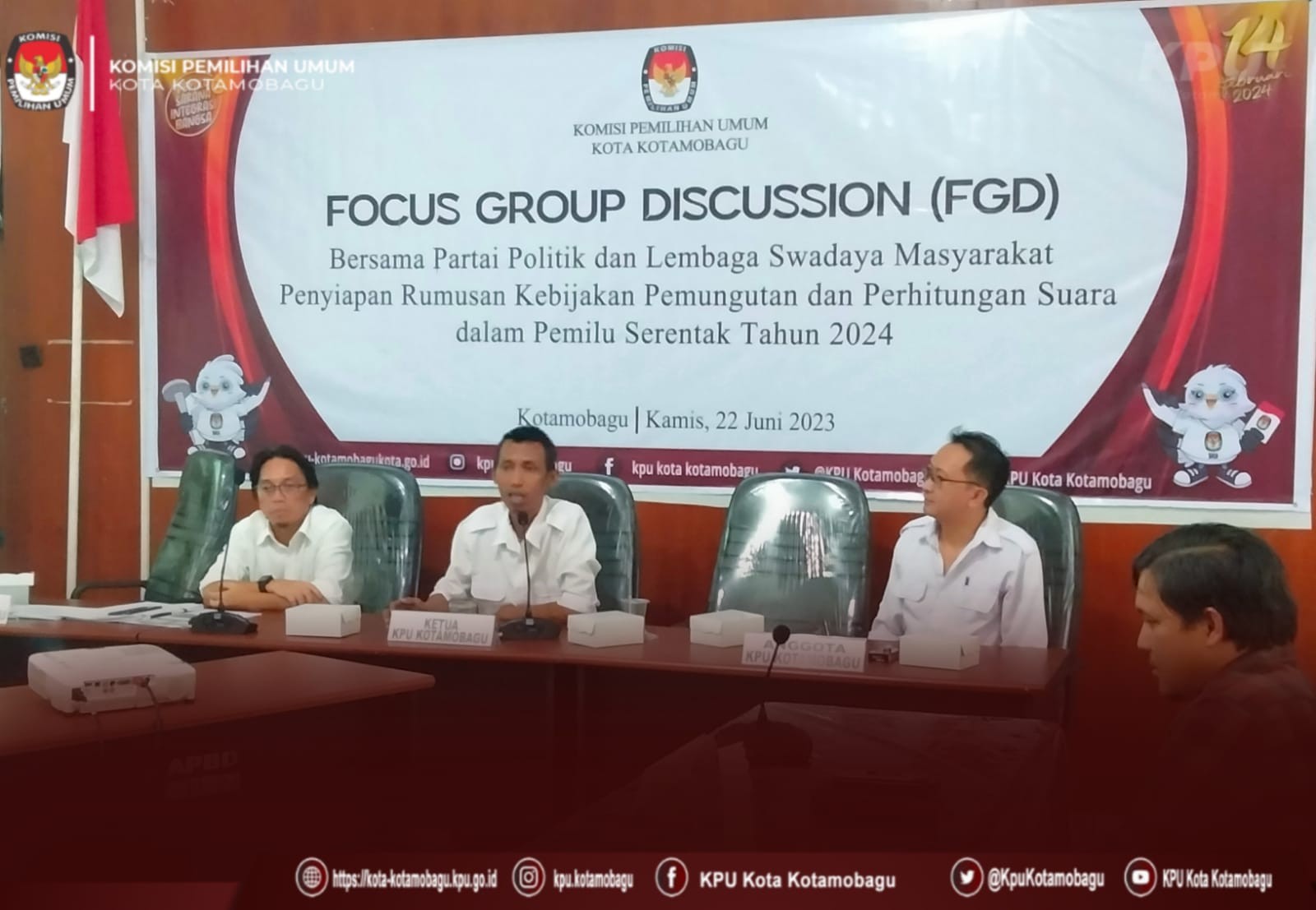 Komisi pemilihan umum (KPU) Kota Kotamobagu melaksanakan Rapat Focus Group Discussion (FGD) yang di ikuti oleh perwakilan 18 Partai politik peserta pemilu tahun 2024.