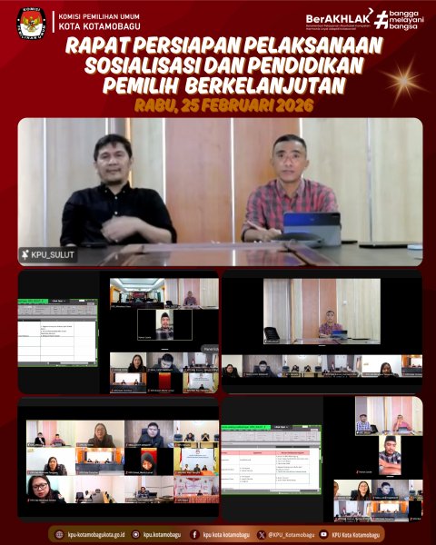 KPU KOTAMOBAGU – Tingkatkan koordinasi, Komisi Pemilihan Umum (KPU) Kota Kotamobagu mengikuti Rapat Persiapan Pelaksanaan Sosialisasi dan Pendidikan Pemilih Berkelanjutan yang digelar oleh KPU Provinsi Sulawesi Utara (Sulut) secara daring pada Rabu, 25 Februari 2026. Kegiatan ini diikuti oleh seluruh Ketua Divisi Sosialisasi, Pendidikan Pemilih, Partisipasi Masyarakat dan Sumber Daya Manusia (Sosdiklih Parmas dan SDM) serta Kepala Subbagian Partisipasi, Hubungan Masyarakat, dan SDM KPU kabupaten/kota se-Sulut. Rapat tersebut dibuka secara resmi oleh Ketua KPU Sulut, Kenly Poluan. Dalam arahannya, ia menegaskan pentingnya pelaksanaan pendidikan pemilih secara berkelanjutan. “Kita perlu mendorong masyarakat menjadi pemilih yang rasional melalui pendidikan pemilih yang berkelanjutan,” ujar Kenly. Menurutnya, upaya sosialisasi dan pendidikan pemilih tidak hanya dilakukan menjelang tahapan pemilu, tetapi harus terus berjalan agar kesadaran dan partisipasi masyarakat dalam demokrasi semakin meningkat. Pada kesempatan yang sama, Ketua Divisi Sosdiklih Parmas dan SDM KPU Sulut, Awaluddin Umbola, menyampaikan bahwa tantangan efisiensi dan keterbatasan anggaran tidak boleh menjadi penghambat dalam menjalankan program sosialisasi. “Di tengah efisiensi dan keterbatasan anggaran, kita harus terus menjalin dan meningkatkan hubungan yang harmonis dengan para stakeholder dalam melakukan sosdiklih,” ungkap Awaluddin. Sementara itu, Ketua Divisi Sosdiklih Parmas dan SDM KPU Kotamobagu, Hairun Laode, menyampaikan bahwa pihaknya telah melaksanakan kegiatan sosialisasi dan pendidikan pemilih dengan segmentasi pemilih pemula di dua sekolah di Kotamobagu. Ia menambahkan, KPU Kotamobagu berencana menambah satu sekolah lagi untuk kegiatan serupa pada esok hari, 26 Februari 2026, bertempat di MAN 1 Kotamobagu. Lebih lanjut, Hairun juga menekankan pentingnya inovasi dalam metode sosialisasi. Menurutnya, pemanfaatan momentum festival ramadan, podcast, serta media sosial menjadi wadah strategis dalam menyampaikan pesan-pesan kepemiluan kepada masyarakat secara lebih luas dan efektif. Melalui rapat persiapan ini, diharapkan seluruh jajaran KPU kabupaten/kota se-Sulawesi Utara semakin solid dan adaptif dalam menyusun serta melaksanakan program sosialisasi dan pendidikan pemilih berkelanjutan guna mewujudkan pemilih yang cerdas, rasional, dan partisipatif. Penulis: Parhubmas dan SDM / Amar