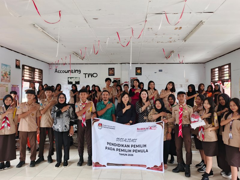 KPU KOTAMOBAGU – Tingkatkan pemahaman generasi muda mengenai pentingnya partisipasi dalam proses demokrasi, Komisi Pemilihan Umum (KPU) Kota Kotamobagu menggelar Sosialisasi Pendidikan Pemilih (Sosdiklih) pada pemilih pemula di SMK Negeri 1 Kotamobagu (Smea), Jumat 13 Februari 2026. Ketua Divisi Sosialisasi, Pendidikan Pemilih, Partisipasi Masyarakat, dan Sumber Daya Manusia, Hairun Laode, dalam materinya menyampaikan edukasi tentang pentingnya menjaga integritas dan kualitas demokrasi. “Sebagai pemilih pemula, adik-adik sekalian memiliki tanggung jawab besar untuk menjaga integritas dan kualitas demokrasi. Pilihlah pemimpin yang memiliki visi dan misi yang jelas, yang benar-benar sesuai dengan harapan dan kebutuhan masyarakat. Jangan mudah terpengaruh oleh praktik politik uang (money politic) maupun kampanye hitam (black campaign), karena hal-hal tersebut dapat merusak nilai-nilai demokrasi dan masa depan daerah kita” ujar Ilun sapaan akrabnya. Sementara, Yessi Z.S. Mentang, selaku Kepala Subbagian Partisipasi, Hubungan Masyarakat dan Sumber Daya Manusia, berharap materi yang disampaikan dapat menjadi bekal bagi para siswa untuk berpartisipasi secara aktif, cerdas, dan bertanggung jawab dalam setiap proses demokrasi di masa yang akan datang. Melalui kegiatan ini, diharapkan partisipasi pemilih, khususnya dari kalangan generasi muda, akan semakin meningkat sehingga mampu melahirkan pemimpin yang berkualitas dan membawa kemajuan bagi daerah. Penulis: Parhubmas dan SDM / Amar