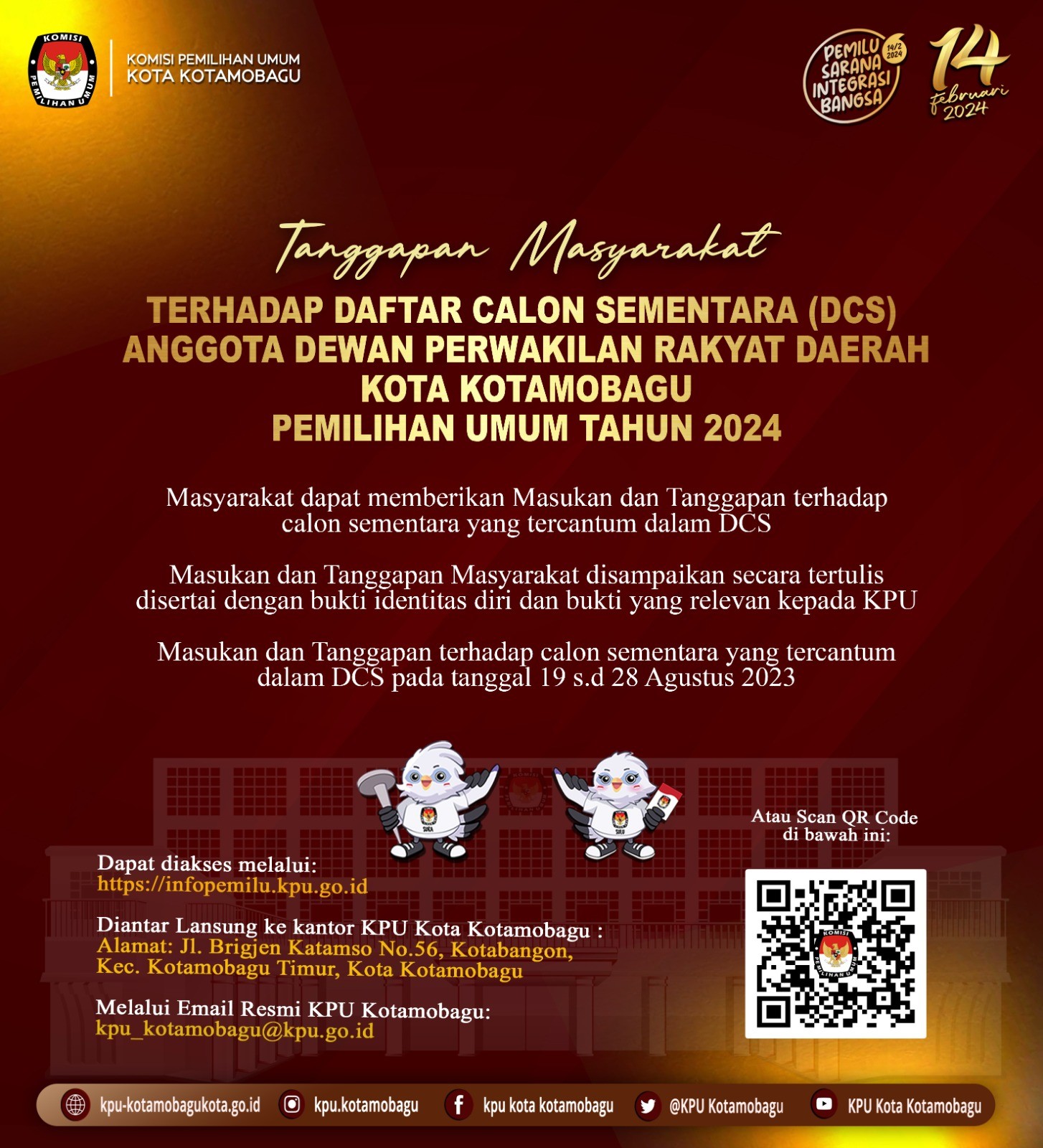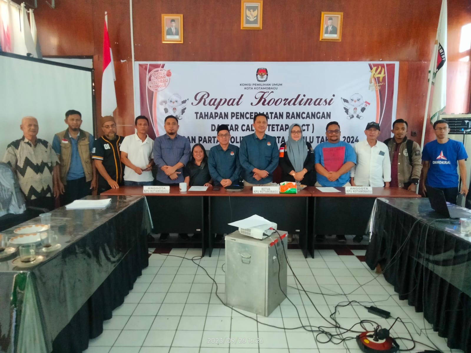 Kotamobagu (kota-kotamobagu.kpu.go.id) - Tahapan pencalonan anggota DPR dan DPRD untuk Pemilu Tahun 2024 kini memasuki tahapan pencermatan rancangan Daftar Calon Tetap (DCT). "Tahapan ini sangat penting di masa pencalonan anggota DPRD Kota Kotamobagu untuk Pemilu Tahun 2024, sebelum ditetapkannya DCS menjadi DCT pada beberapa pekan ke depan," kata Asep Sabar, Kadiv Teknis Penyelenggaraan KPU Kota Kotamobagu, Selasa (26/09/2033). Sebagai penghujung tahapan pencalonan, kata Asep, maka butuh koordinasi yang intensif dan baik antara peserta pemilu dalam hal ini parpol dengan penyelenggara; KPU Kota Kotamobagu serta Bawaslu. Ini penting agar tidak muncul permasalahan pasca penetapan DCT nanti. "Di tahapan pencermatan saat ini parpol dipersilakan untuk melakukan penggantian bacaleg DCS. Asal, tidak melebihi jumlah bacaleg di setiap dapil sebagaimana sudah ditetapkan dalam DCS atau tidak merubah formasi 30 persen keterwakilan perempuan." Nah, terkait hal tersebut KPU Kota Kotamobagu pada Selasa ini mengundang LO atau pengurus parpol peserta Pemilu 2024, membahas tahapan pencermatan dalam rapat koordinasi (rakor). Rakor yang dìpandu Ketua KPU Kota Kotamobagu itu menghadirkan pembahas utama; Zulkifli Kadengkang (Wakadif Teknis Penyelenggaraan KPU Kota Kotamobagu) dan Kasubag Teknis; Fahmidin Manoso, bertempat di Aula Kantor KPU Kota Kotamobagu."Kami, dalam hal ini KPU Kota Kotamobagu, mengingatkan kepada semua parpol peserta pemilu 2024 bahwa seluruh dokumen pencaleg-an sudah harus masuk selambatnya hingga tanggal 3 Oktober 2023. Termasuk bila ada rencana penggantian bacaleg DCS," jelas Zulkifli yang juga Kadiv Parmas dan Sosialisasi ini dan hadir di rakor melalui fasilitas zoom meeting dari luar daerah. KPU Kota Kotamobagu, kata Zulkifli, berharap semua proses berjalan sesuai standar yang berlaku. Lebih lanjut Zulkifli menegaskan bahwa tahapan-tahapan utama dalam proses pemilu, butuh partisipasi aktif semua pihak, termasuk parpol. Itu adalah kunci untuk menjaga integritas pemilu." Karena itu rakor dilakukan untuk menjadi wadah bagi para pemangku kepentingan, termasuk parpol, Bawaslu, dan KPU untuk berdiskusi serta berkoordinasi. Hadir di acara rakor tersebut selain dari parpol juga ada Pimpinan KPU Kota Kotamobagu: Iwan Manoppo (Ketua), Asep Sabar, dan Yokman Muhaling, serta Pimpinan Bawaslu. (*)